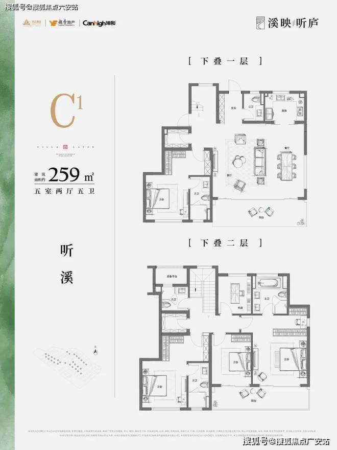 溪映听庐打造上叠和下叠两种产品,全部独立入户,并且凭借园区约10米的高度差,超过半数的房源都能享受到近360度的茶园山景.