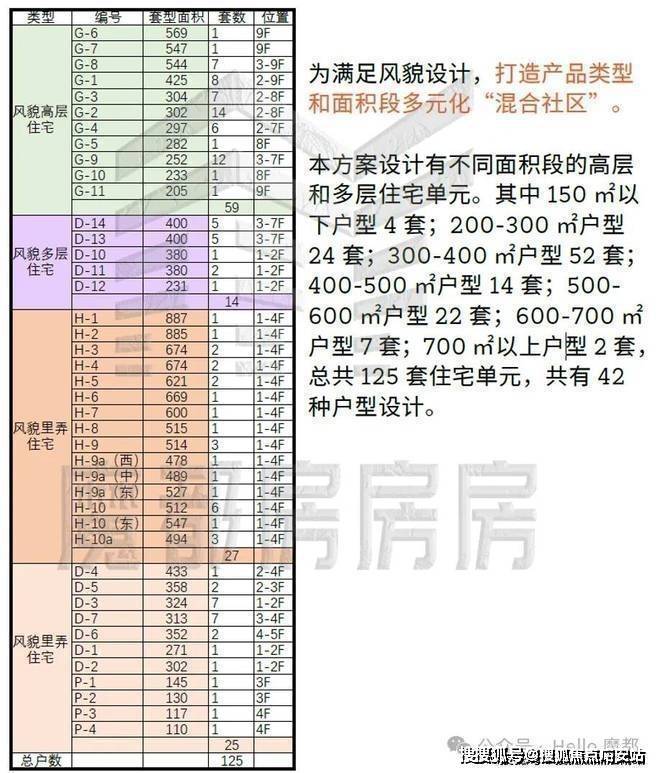 包含面积段约209-641㎡高层住宅,面积段约231-400㎡多层住宅,面积段约㎡高层住宅110-433㎡叠加别墅(含平层),面积段约497-887㎡合院别墅。