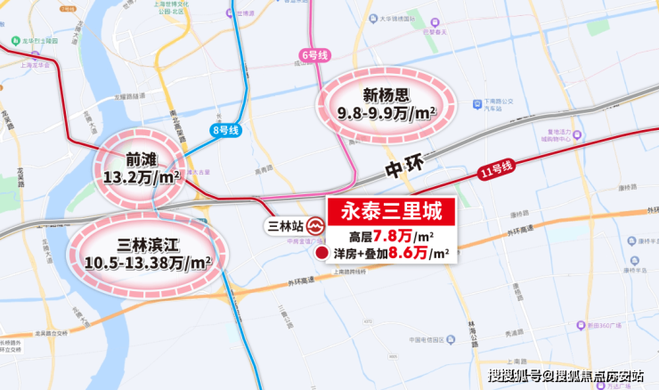 事实上,三林滨江在空间上与前滩更为贴近,但永泰三里城在时间距离上更占优势。