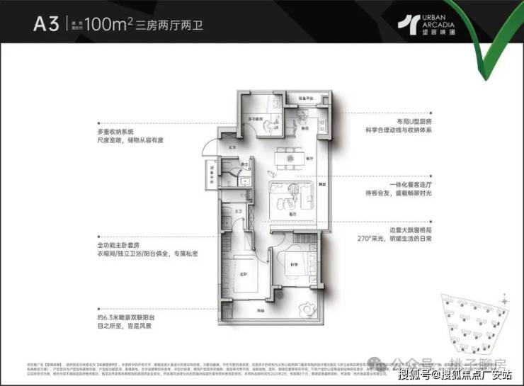 ✅97方三房两厅两卫 6.4米大面宽观景阳台
