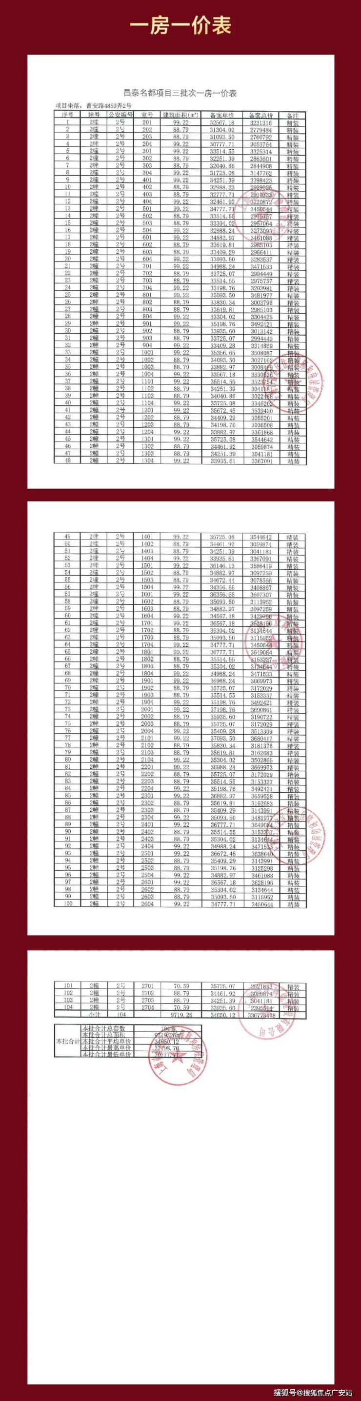 项目一房一价表▼