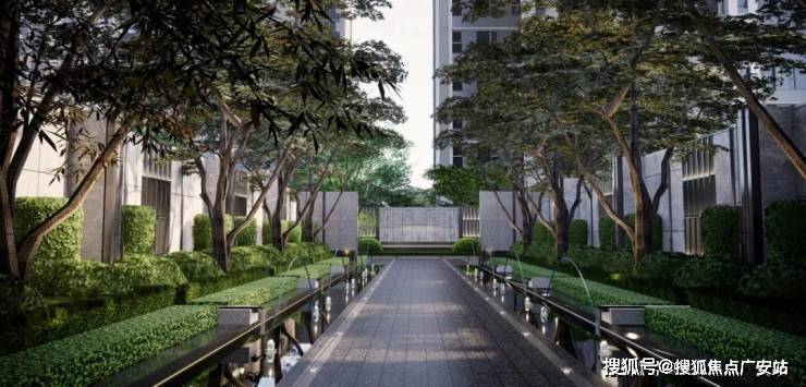 第五重:下沉庭院打造一体式景观,墙面流水至地面,结合水中花池营造出纯粹的自然之境。