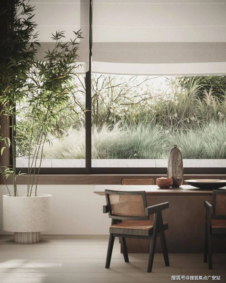 住宅中的户外绿植透过窗户呈现在眼前,令人感到自然的气息。