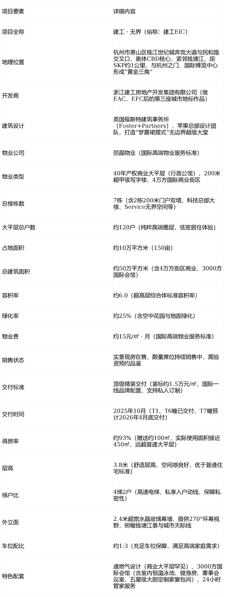 销售优势:LEED+WELL双金认证,健康舒适生活环境;2025年10月现房交付,品质眼见为实,即买即住;通燃气设计,商业大平层产品力天花板;不限购不限贷,适合全球高净值人群资产配置;福斯特建筑设计,苹果总部同款设计团队,建筑美学价值高