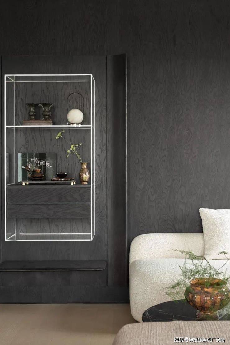The entrance route is no longer a functional passage but a spatial prologue through an artistic foyer and a double-door design, achieving a psychological switch of "enjoying the privilege upon returning home".