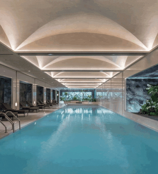 二楼通过专业餐酒吧设备、艺术光厅、女性友好健身房、上海首个度假感植物园泳池等营造艺术感会所,每一个空间都不是简单的功能间,而是 化身艺术空间。