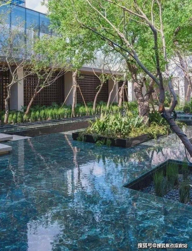 倒映着天光树影,颇具东方意境