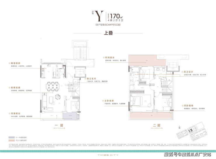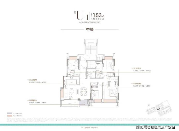 中叠:IMAX级采光面,四开间朝南,双套房设计保障私密性