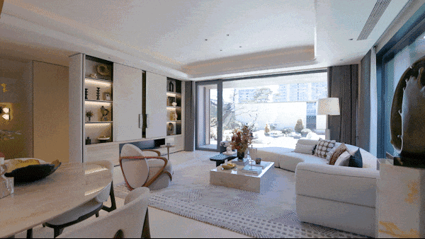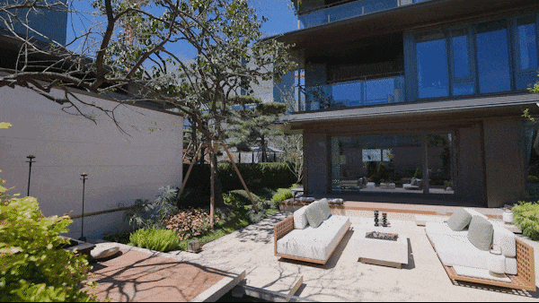 叠墅以“一轴五境多巷道”,以满满的精工细节营造隐奢仪式感。窗墙比大幅提升,落地玻璃增强通透感。