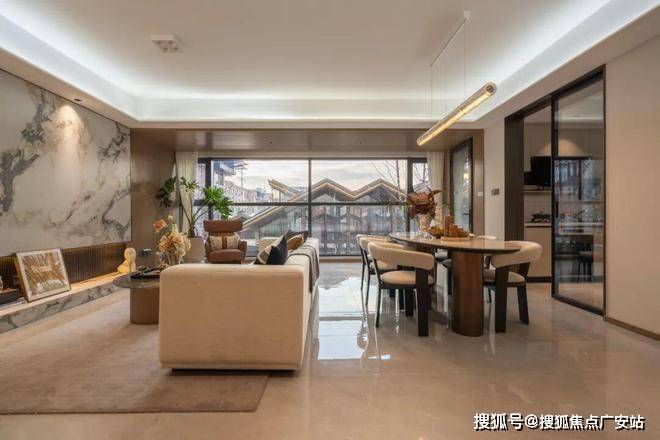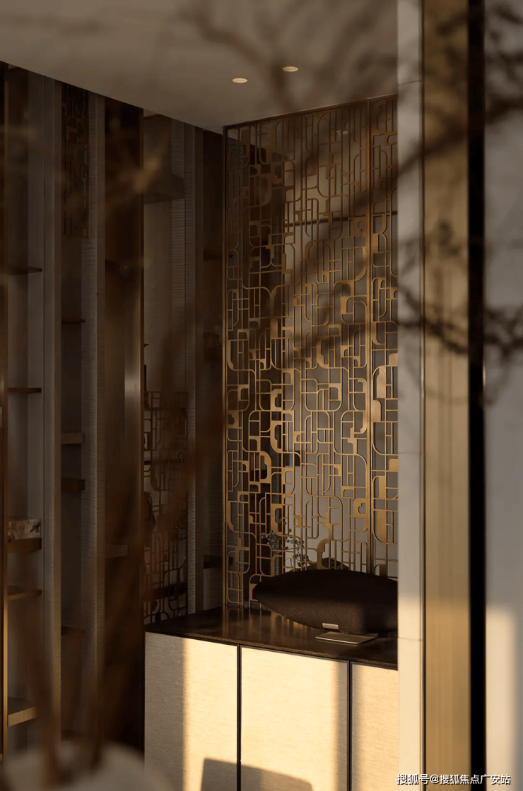 建筑方面,采用经典三段式美学构图,结合玻璃幕墙、质感涂料、金色铝板线条等,以鎏金感封面建筑,刷新板块天际线。