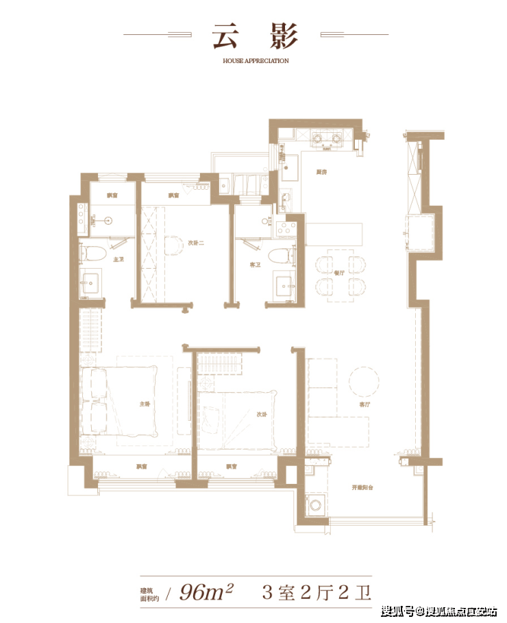 产品类型:约96㎡三房两厅两卫,约127㎡四房两厅两卫