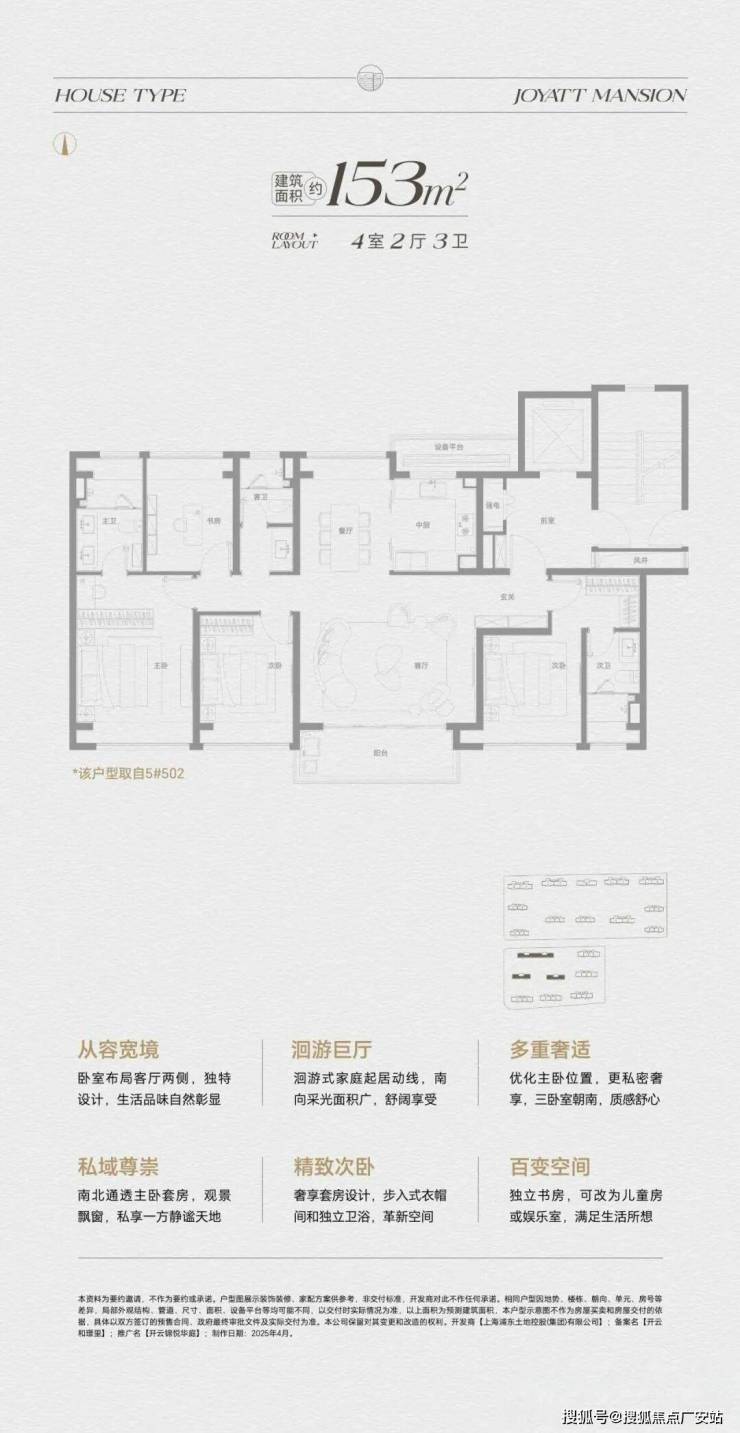 梯户比:两梯两户(153㎡户型)或两梯四户(76/107㎡户型)