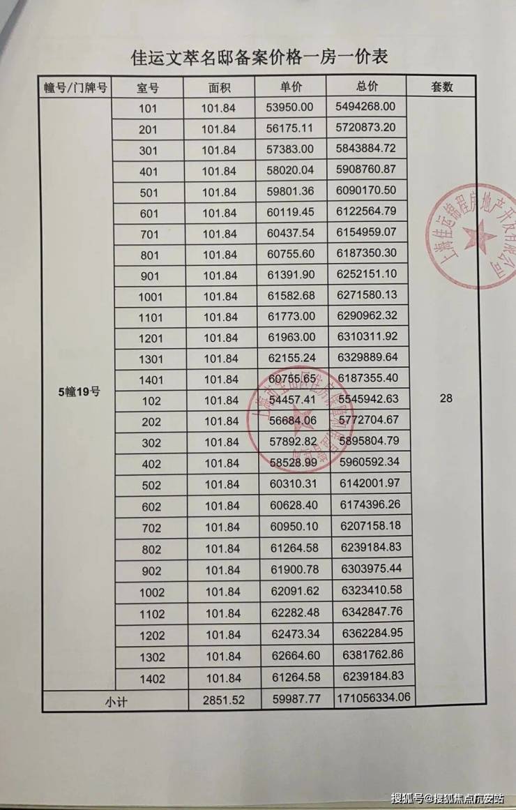 一房一价表发布: