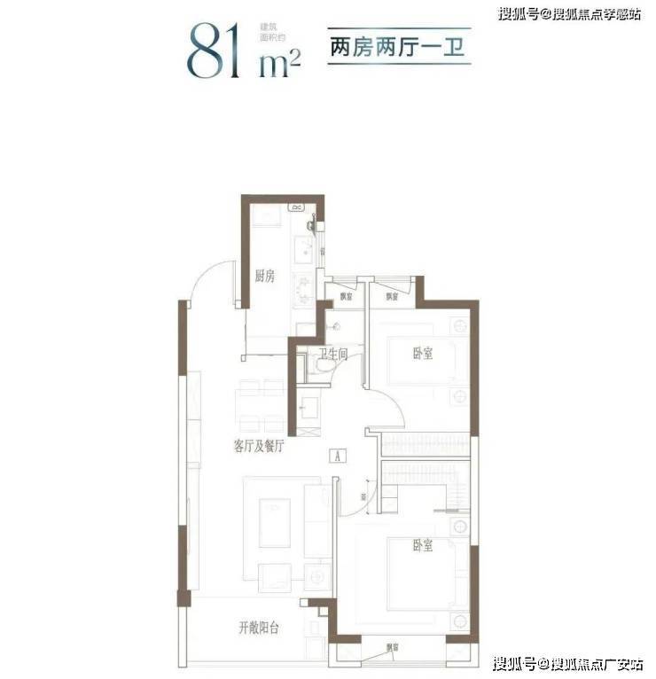 户型特点:小面积,低总价;2房朝南大面宽,舒适生活感受;卧室飘窗设计,释放更多公共空间。