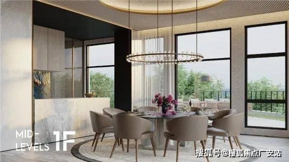 客厅7M超大面宽承接景观庭院,餐厅5M面宽尽享私宴奢华