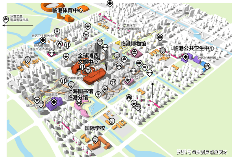 自带3万方商业;临港城市航站楼(规划中),对标香港、曼哈顿等的国际自由港;直线距离项目5KM范围还有城市书香、港城新天地、百联临港生活中心、港城广场等。