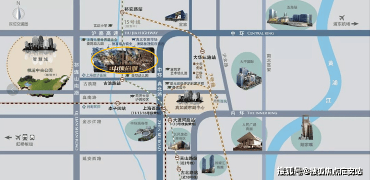 【中环名品公馆】别名智富中环尚城,位于上海普陀区,隶属大真如板块,长三角入沪第一站,有上海“西大堂”之称。项目北面紧沿沪嘉高速、南至古浪路、西至张泾浜、东至真大路,距离上海铁路西站仅4公里。