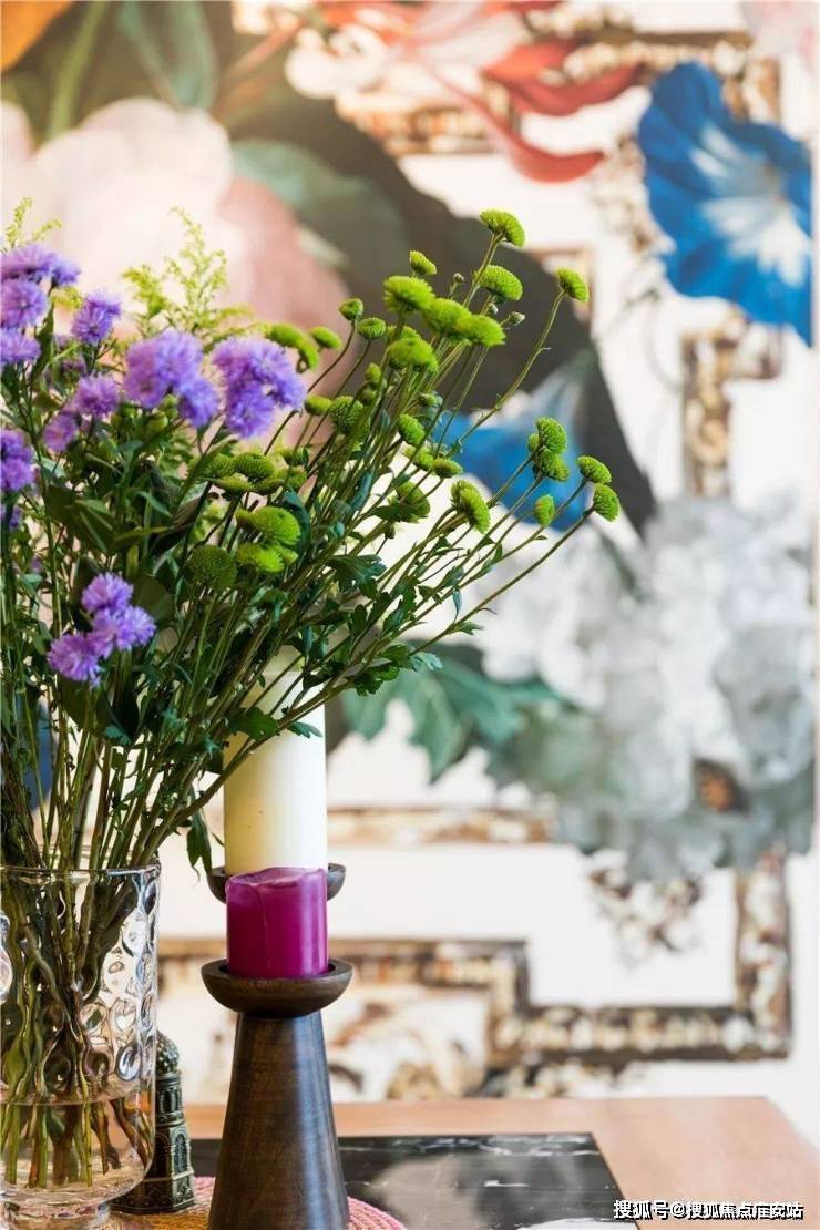 餐厅墙面呼之欲出的大朵大朵的牡丹和喇叭花,设计师画出了生动的立体感,好似下一刻就会从墙体里开出花来。