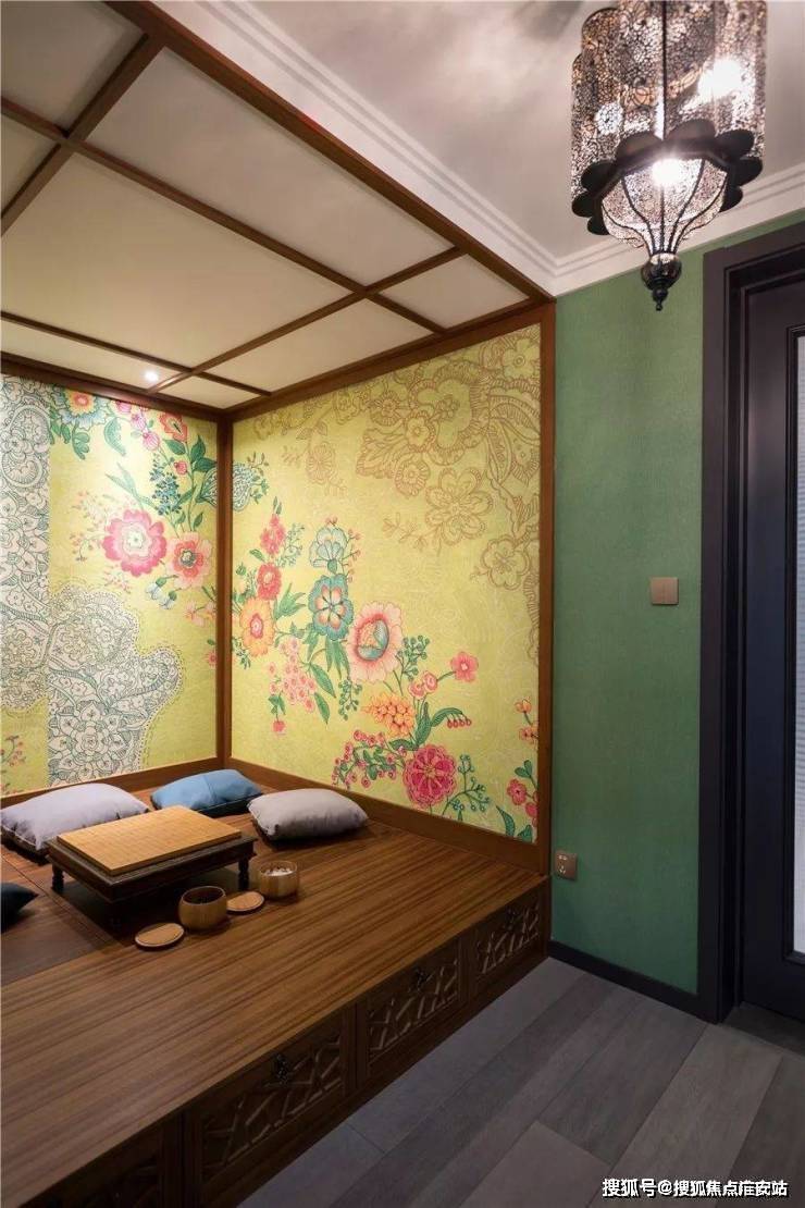 茶室榻榻米的墙面也手绘了几幅花朵图案。整个家像是被花朵和植物笼罩了,虚虚实实之间,体会住在大自然里的惬意。