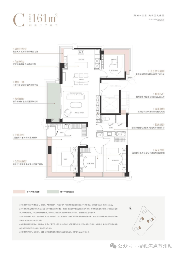 而建面约161㎡的奢享四房,则是对改善需求的深刻洞察。其设计更是颠覆性的:全屋四个转角窗构建外滩天际环幕视野,三卧朝南且近乎等面宽的“真四房”设计,实现了家庭成员间的景观平权与舒适平权。酒店式四分离次卫与独立家政空间的设计,更是对生活细节的极致考量。