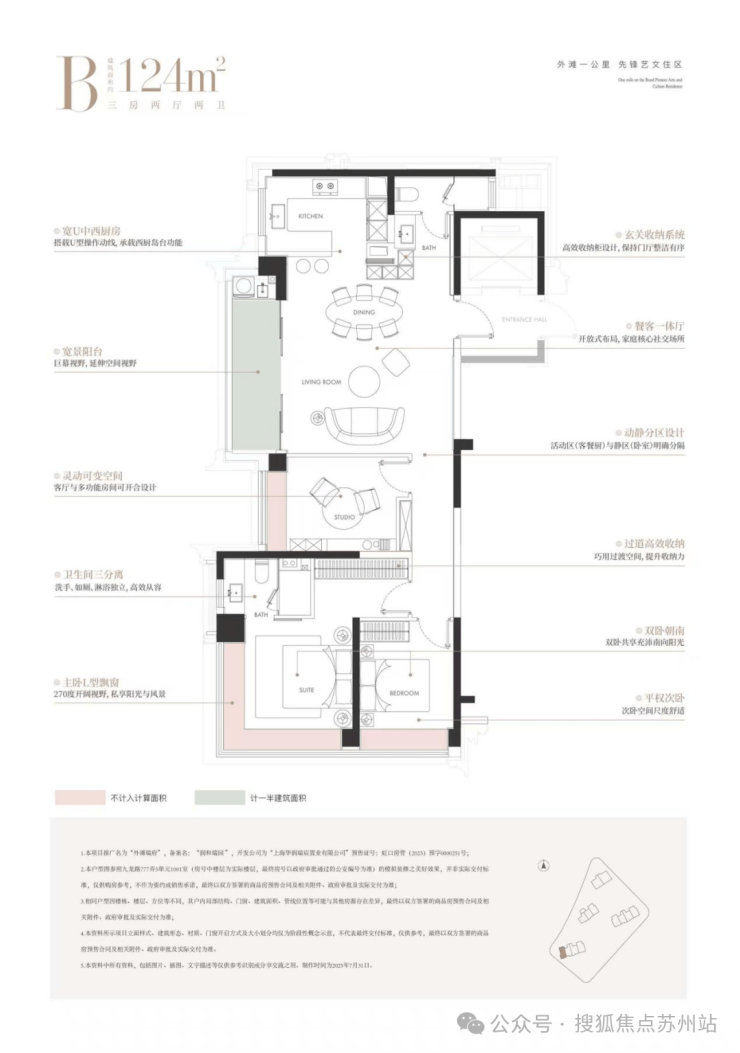 建面约124㎡的边厅“全景舱”户型,是外滩板块极致稀缺的臻品。它以三房布局满足主流家庭需求,更以无遮挡的视野与巨幕般的边厅落地窗,将城市天际线化为私藏画卷。主卧270°L型飘窗,让阳光与风景成为生活的主角。