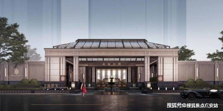 入口形象:超20米宽、10米高奢华门仪,采用高奢复古石材。