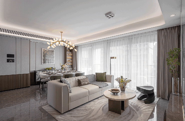 整个空间以静、雅、柔传达着家的精气神儿,黑白的交错,棱角的柔和,都是家的本色,都是极简的象征。