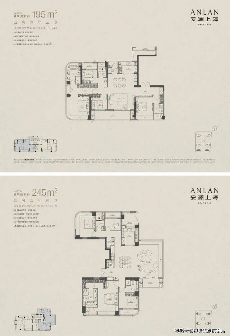 目前少量建面约195-245-280-370㎡奢阔大平层在售