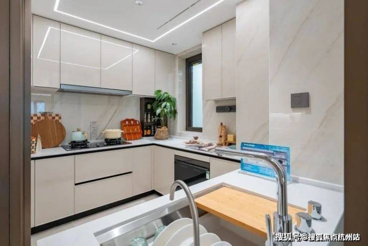 市场上绝大多数建面约100㎡的3房户型,小厨房+单开门冰箱是标配。对于一生爱囤货的中国人来说,如此格局只能说“需要忍受”。为此,招商序设计了一面S墙,可以放下一个超大的双开门冰箱。
