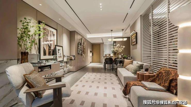 通过 “S墙+4飘窗设计”释放灵动空间,餐客厅一体化消除传统走廊造成的空间浪费。