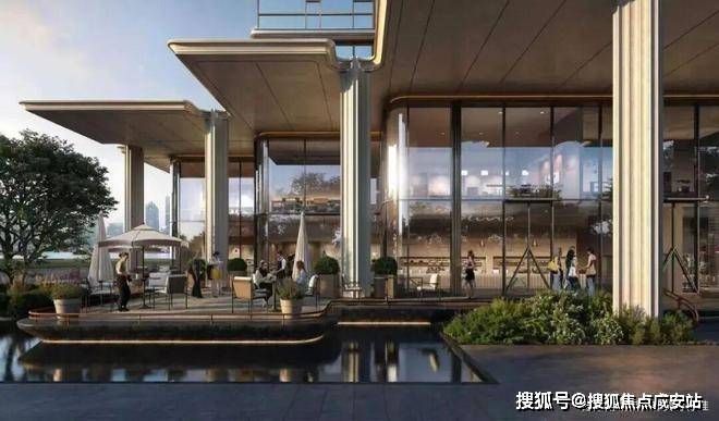 “回归之境”以3500㎡下沉水苑为核心,汇聚会客、泳池、茶室等多功能空间,形成仪式感十足的社区舞台。