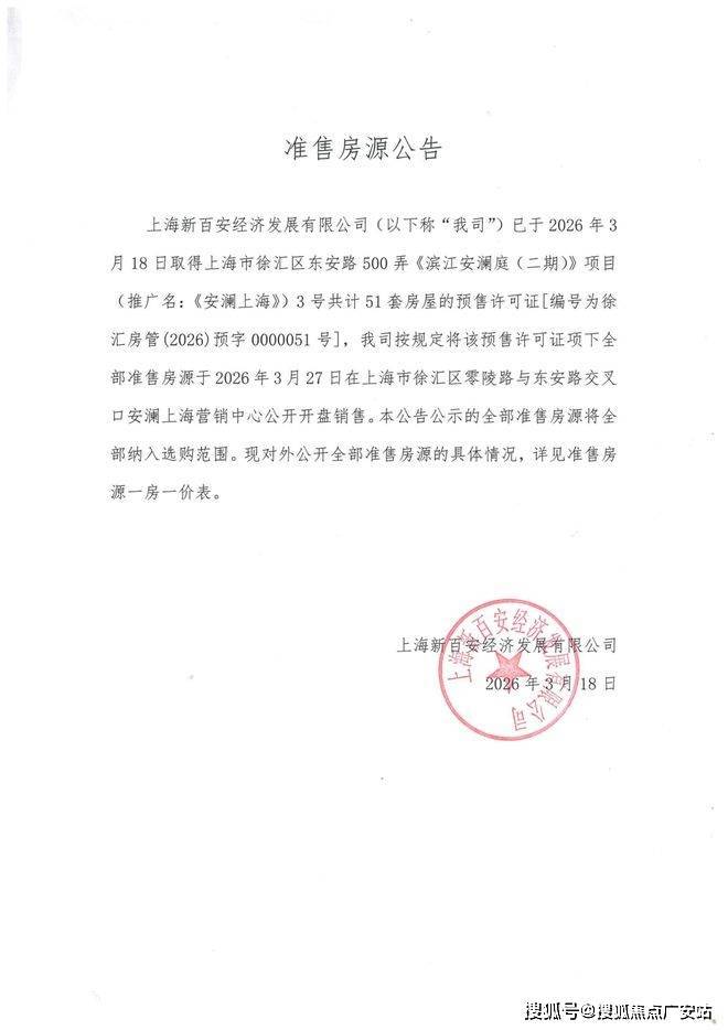 1.本宣传资料为要约邀请,不构成要约或销售承诺,本资料中所展示的所有细节非政府最终审定的方案,户型、建筑(包括但不限于外立面、材质、分割形式、颜色等)、景观(包括但不限于绿化、水景等)、会所等均不作为要约或承诺,最终以政府审定为准。2. 本宣传资料中对项目周边环境、交通、教育、商业及其他配套的介绍旨在提供相关信息,不代表着出卖人对此做出了要约或承诺;相关宣传内容不排除因政府相关规划、规定及出卖人分期规划、未能控制等原因而发生变化。3. 买卖双方的权利义务以双方签订的《商品房买卖合同》及其补充协议、附件等书面文件为准。4. 本宣传资料中部分内容仅在特定户型房源中体现,最终交付以双方签订的《商品房预售/销售合同》及附件等协议为准。5. 本宣传材料中的所有信息及文字仅供参考之用,部分图片曾以电脑修改,宣传资料将视情况进行更新,敬请留意最新资料,开发商在合法范围内保留解释权。6. 本广告文字、图片、数据等素材部分源于网络,内容版权归原作者所有;如有版权使用相关责权,请及时与本公司取得联系。本文内容图片未经准许,严禁转载。7. 本项目开发商为:【上海新百安经济发展有限公司】,推广名为:【安澜上海】,备案名为:【滨江安澜庭】,预售证号:徐汇房管(2026)预字0000051号;本资料制作于2026年【3】月,有效期30天,本公司保留对宣传资料修改的权利,敬请留意最新资料。
