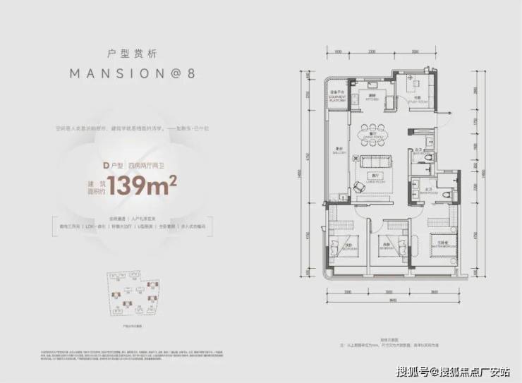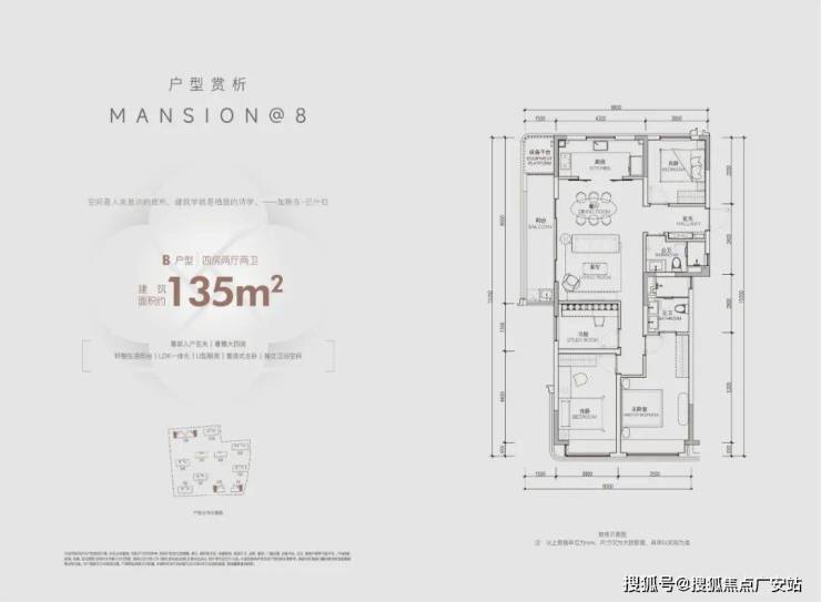 建面约135方边套户型,在空间设计上,升级户型灵动性和社交空间最大化,精心布局入户玄关,近40方的光幕大横厅、主卧星级套房、全景飘窗、约4.3米面宽的厨房等空间系统,完全是以豪宅的尺度奢享不同阶段的生活。