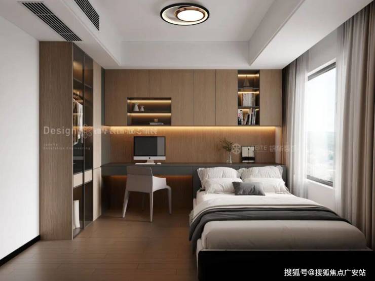 榻榻米房间一体设计:床、柜、桌连体定制,极致利用小空间(儿童房/小次卧尤佳)。榻榻米靠墙(常靠窗),带储物(掀板+抽屉)。衣柜无缝衔接床头或床侧,书桌整合于床尾或延伸侧。功能高度集中,动线流畅,是小户型扩容神器。注意通风防潮。