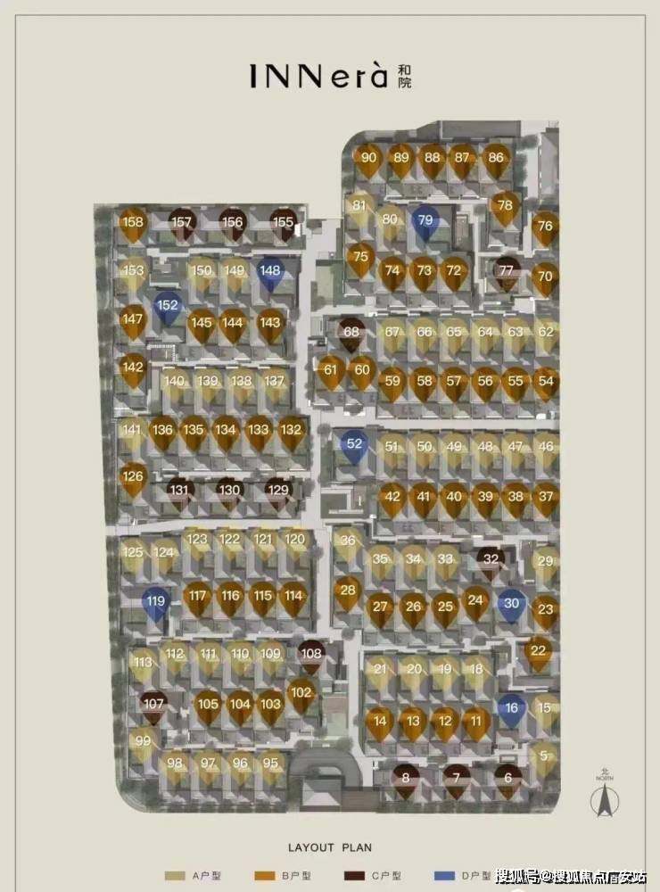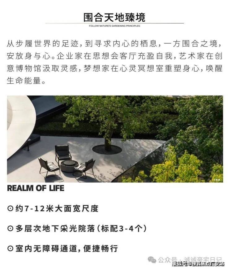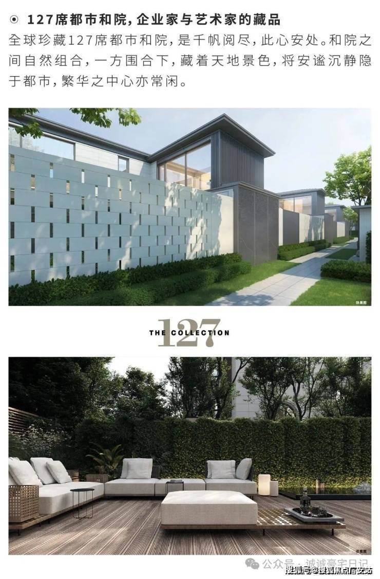 产品类型:主打建面约520–815㎡的合院别墅,共127席,容积率仅0.7,私密性强