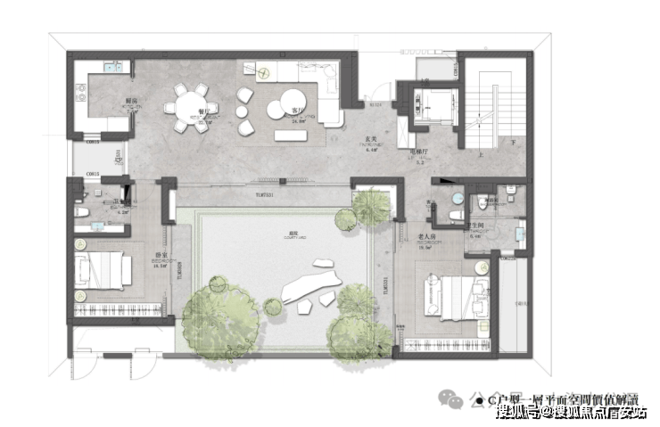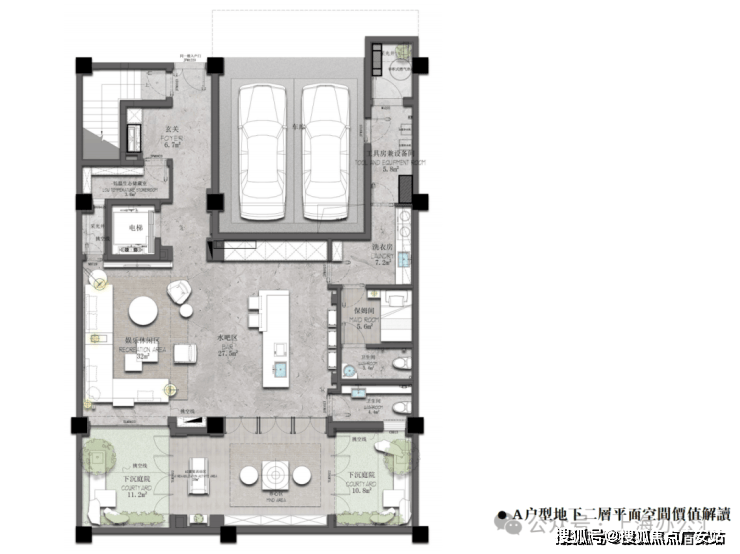 地下室6米挑高客厅 + 下沉式采光天井