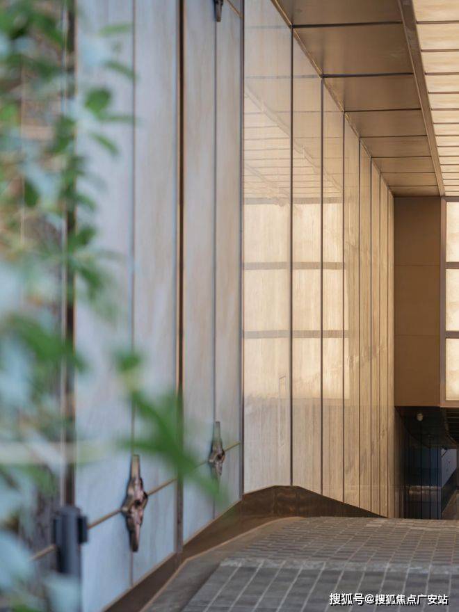 两侧墙面,则以温润的进口贝金米黄石材为基底,嵌入的透光云石玻璃如同光之泉眼。当车驶入时,感应装置悄然启动,金属线条内的追光灯带便随之亮起,打造出光影梦幻的感觉。