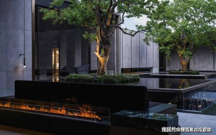 三重跌水之上,是四座乌桕组成的中岛绿植。从千棵树苗中精挑细选了这四棵冠型饱满的乌柏。身隐天地自然间,悦揽静安灵泉境。