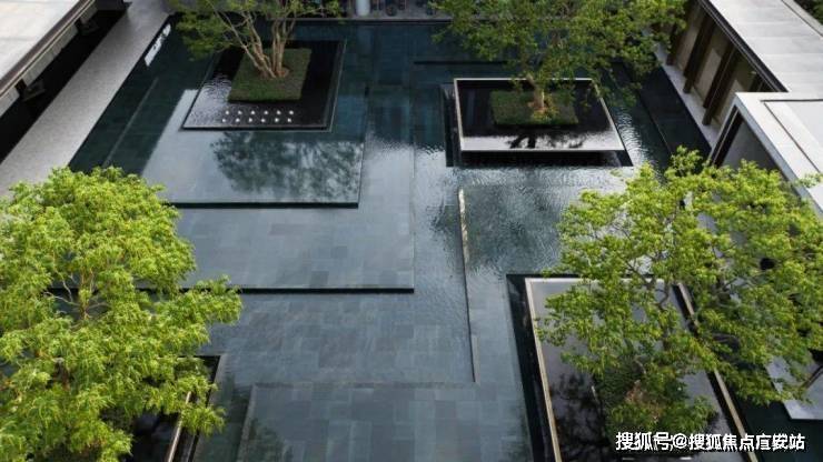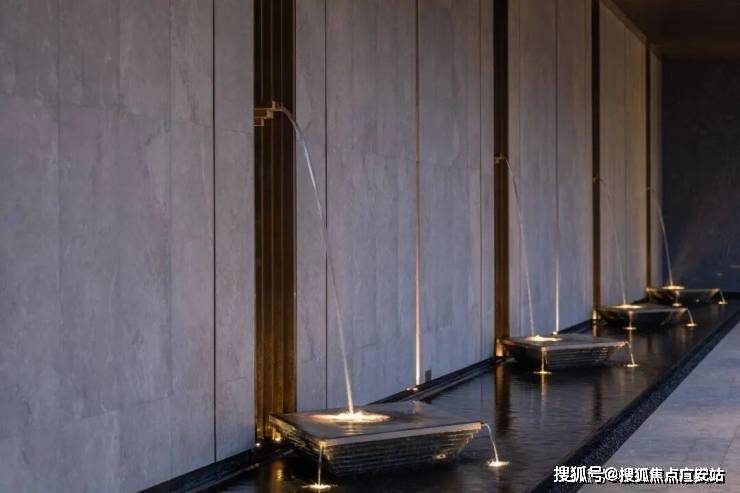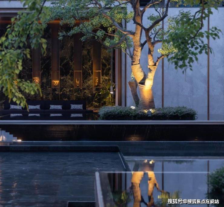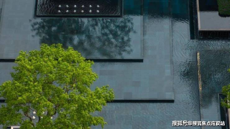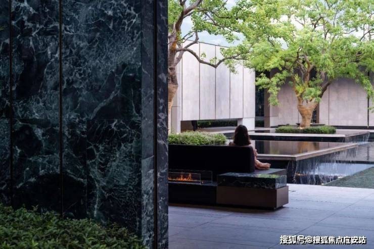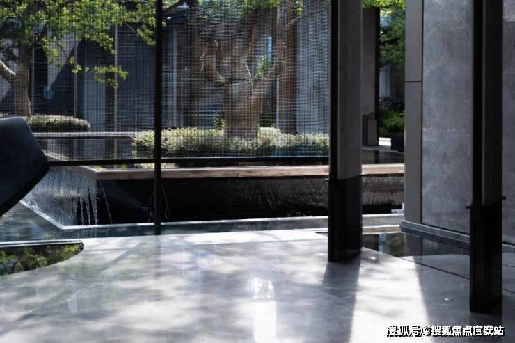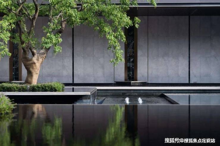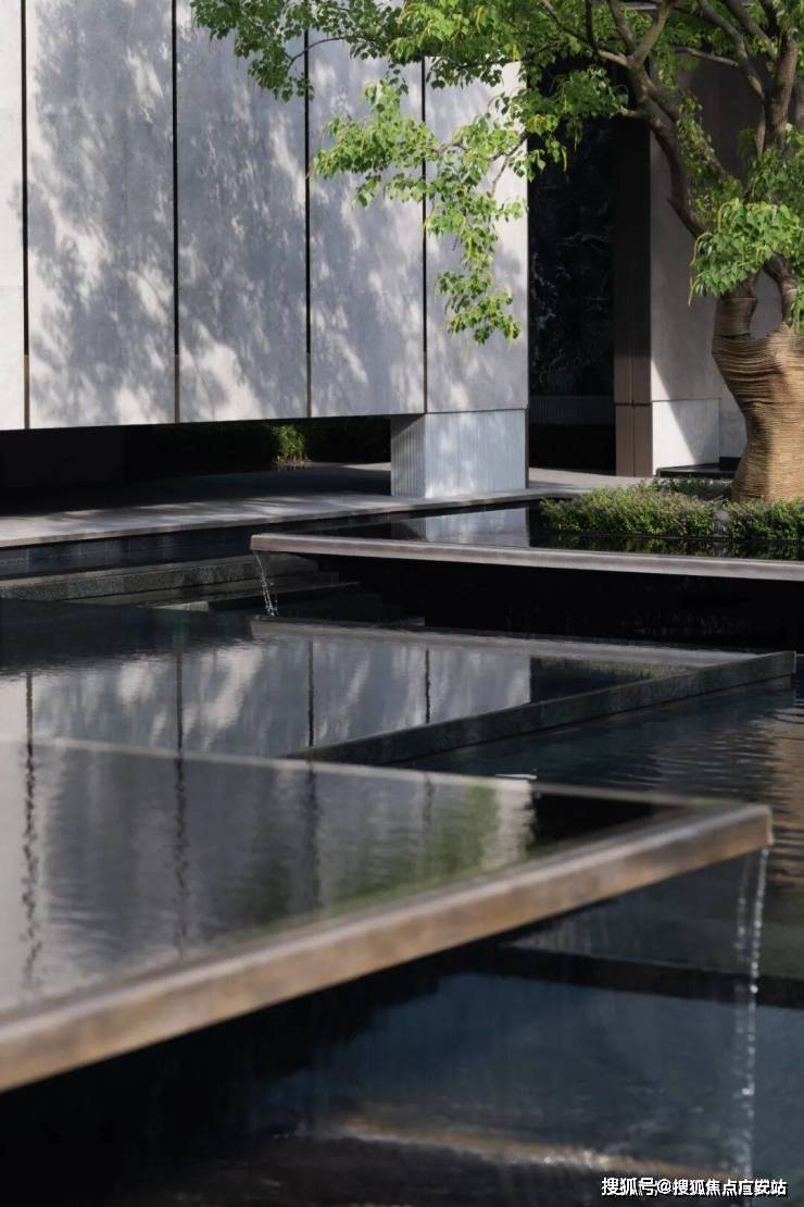 一缕细泉从绿宝石般的景墙中流入水台,耳畔传来潺潺的水声。树影跃动与水中倒影相谐,呈现另一个观赏自然的维度。