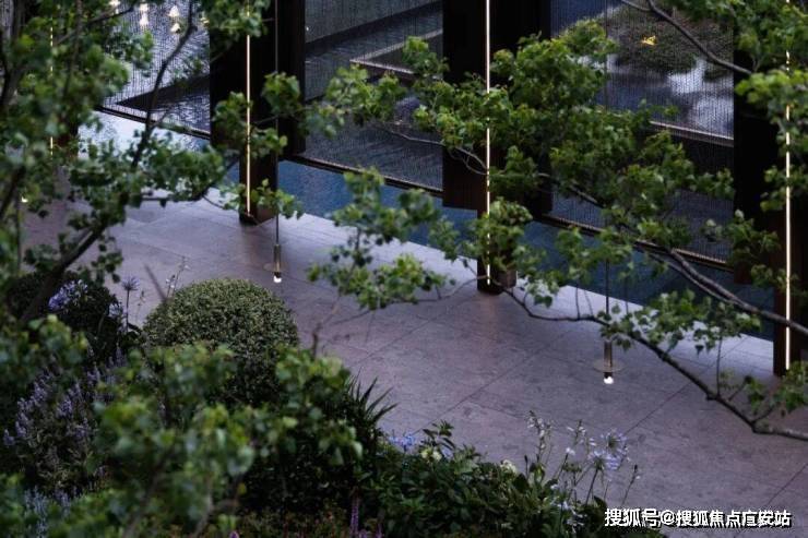 无风雨廊一侧镶嵌了如绿宝石般高级定制的序列水景,纵享极致的静安归家礼序。