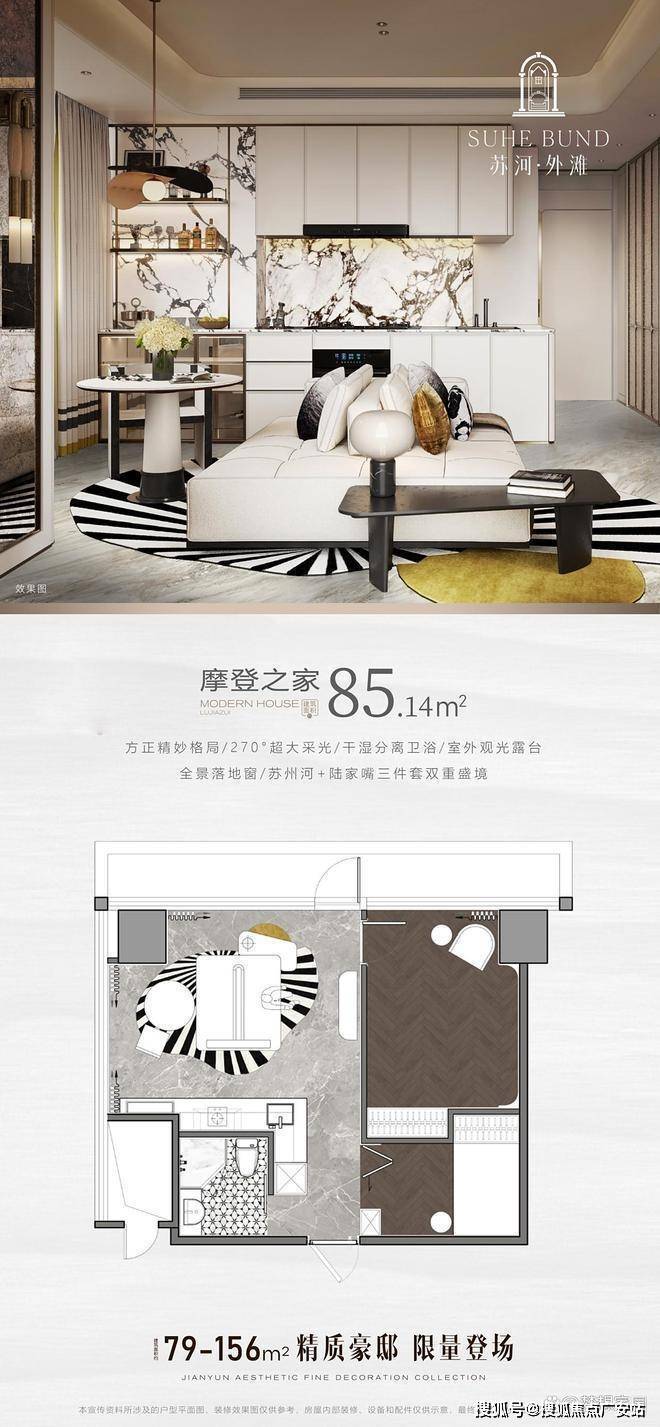 3.180°环幕弧形瞰景会客厅,俯瞰苏州河美景