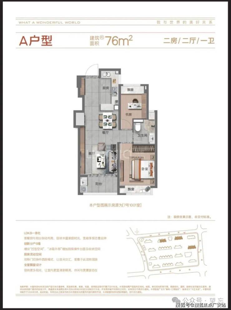 76㎡ 两房两厅一卫:276-300 万|精装全配,刚需入门,得房率 78%