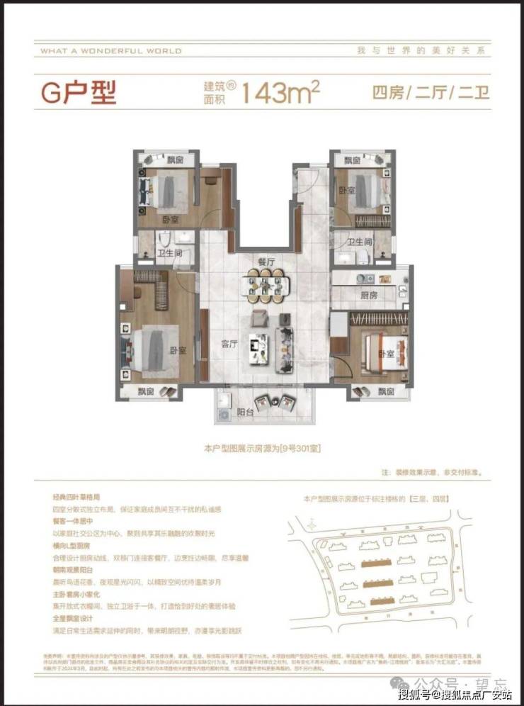 【建面143平4居】585-600万、4室2厅2卫、大平层、南北四叶草户型!一梯一户