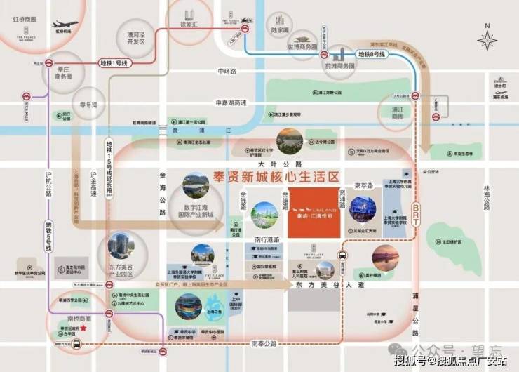区位:地处奉贤新城15单元,同时属于金汇板块,享受奉贤新城+临港自贸区双重发展红利!一路之隔龙湖天街、B R T快速公交!500米上海大学附属学校九年制、致远高中800米。