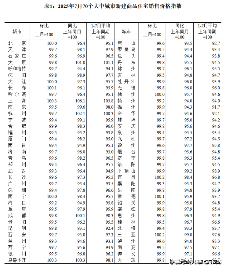 另外,根据易居研究院测算,7月份全国70个城市新建商品住宅价格指数环比涨幅为-0.3%,同比涨幅为-3.4%