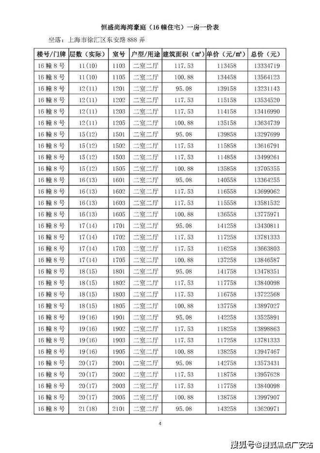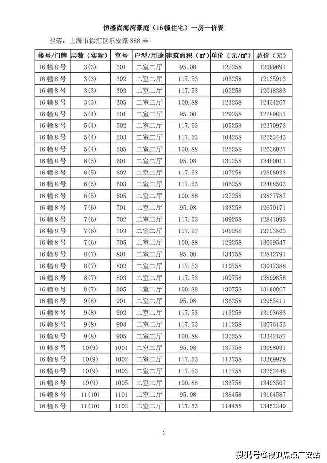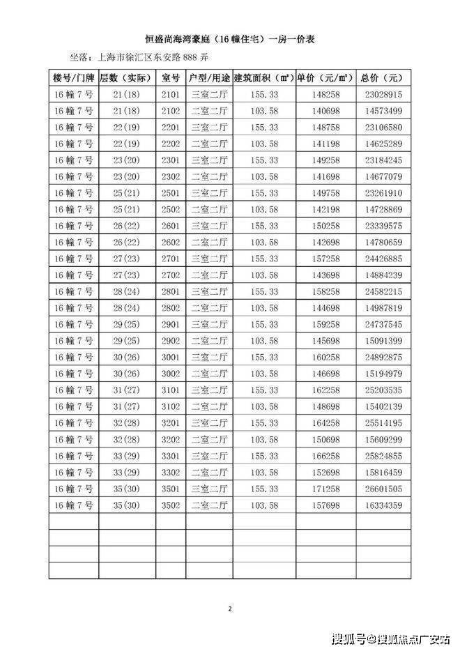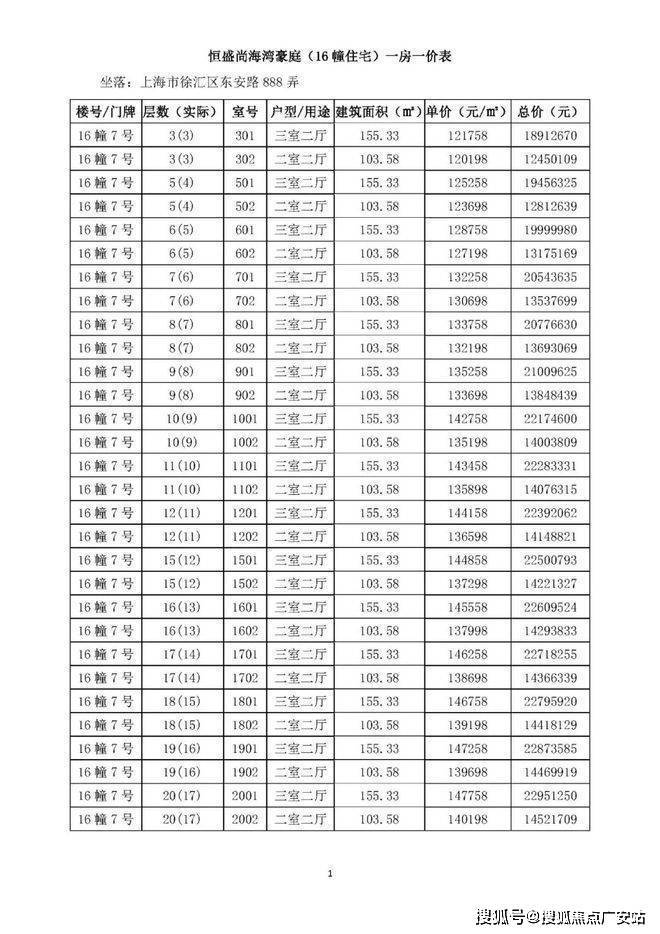 一房一价表如下: