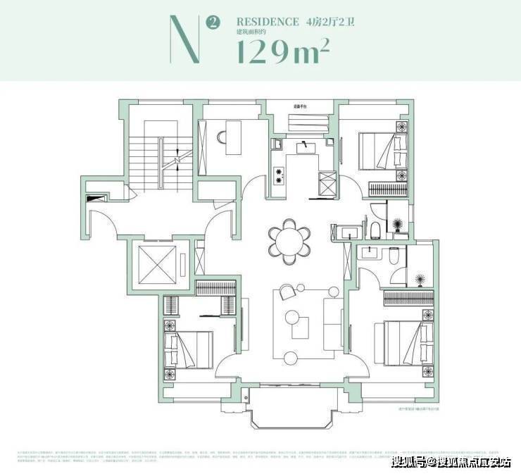 129㎡基本是这次产品线里的“人气担当”。四叶草格局让四个房间分布在四角,私密性和动线都有保证;南向三开间+宽尺度客餐厅,让一家人的起居、社交都很舒展。