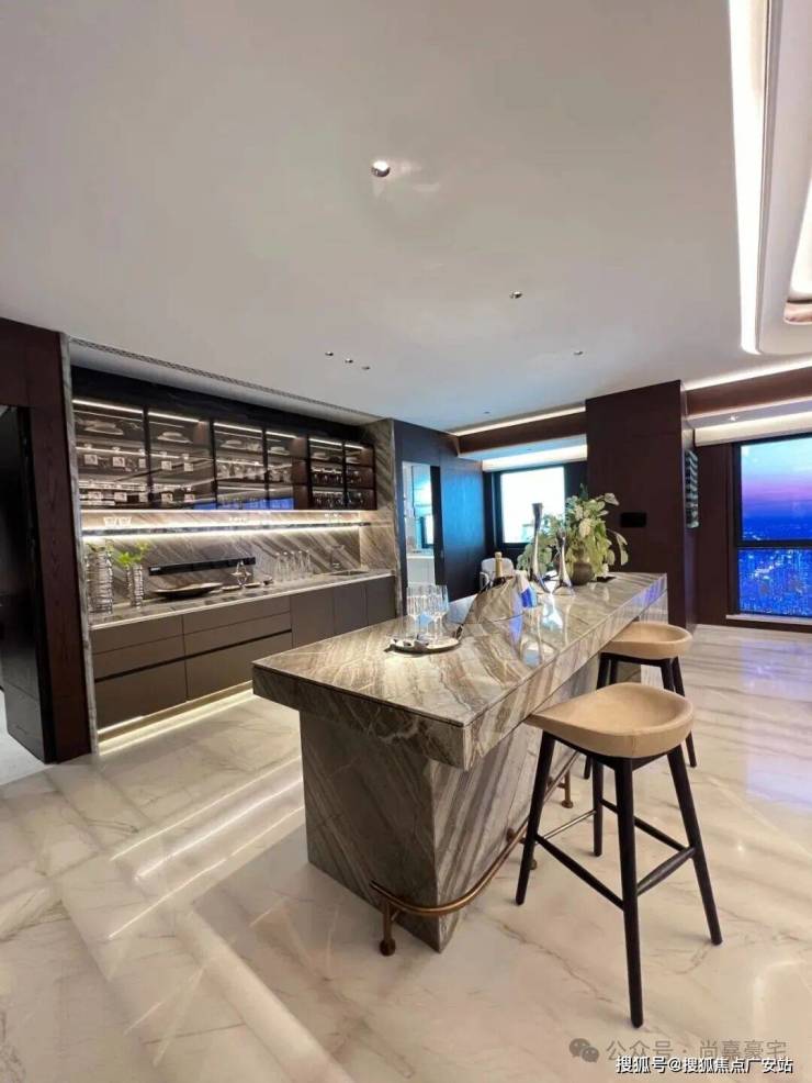 491.28㎡户型(11层):总价约8779万,单价178700元/㎡。梁志天大师亲自操刀室内设计,270度落地窗搭配约17米超级大阳台,最大化延伸采光面与瞰景视野。餐厨社交化、客厅多功能化、主卧小家化、次卧兴趣化的场景化设计,将艺术格调融入生活日常;地面局部点缀皇家蓝玻利维亚蓝奢石,卫生间铺陈静雅粽奢石,细节处雕琢高阶品位。