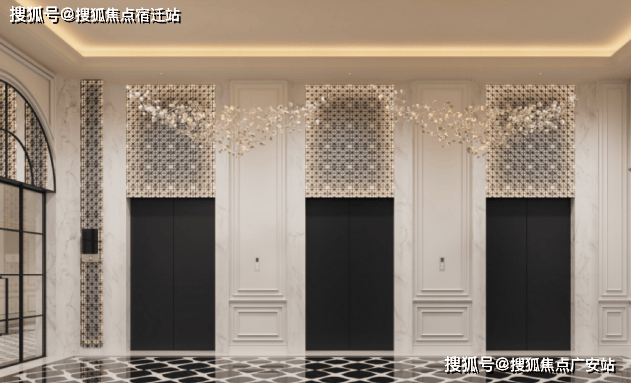 1、电梯门头:镂空发光精雕的铜板,明亮有度,匠造风范。