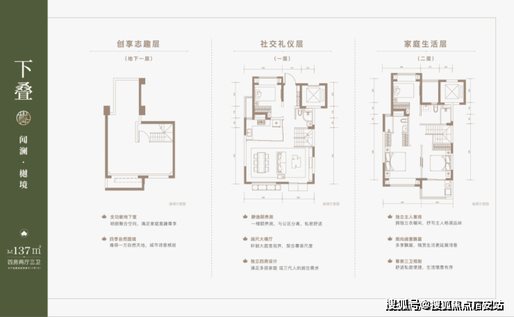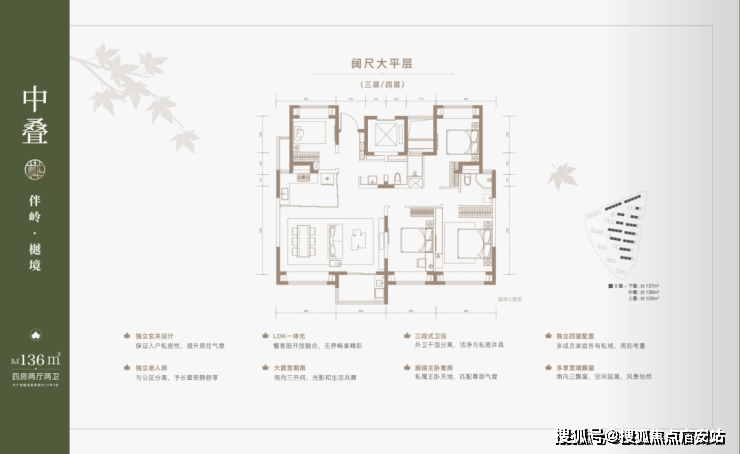 建面约137㎡下叠,四房两厅三卫全能格局,非常适合二娃家庭以及三代同堂。